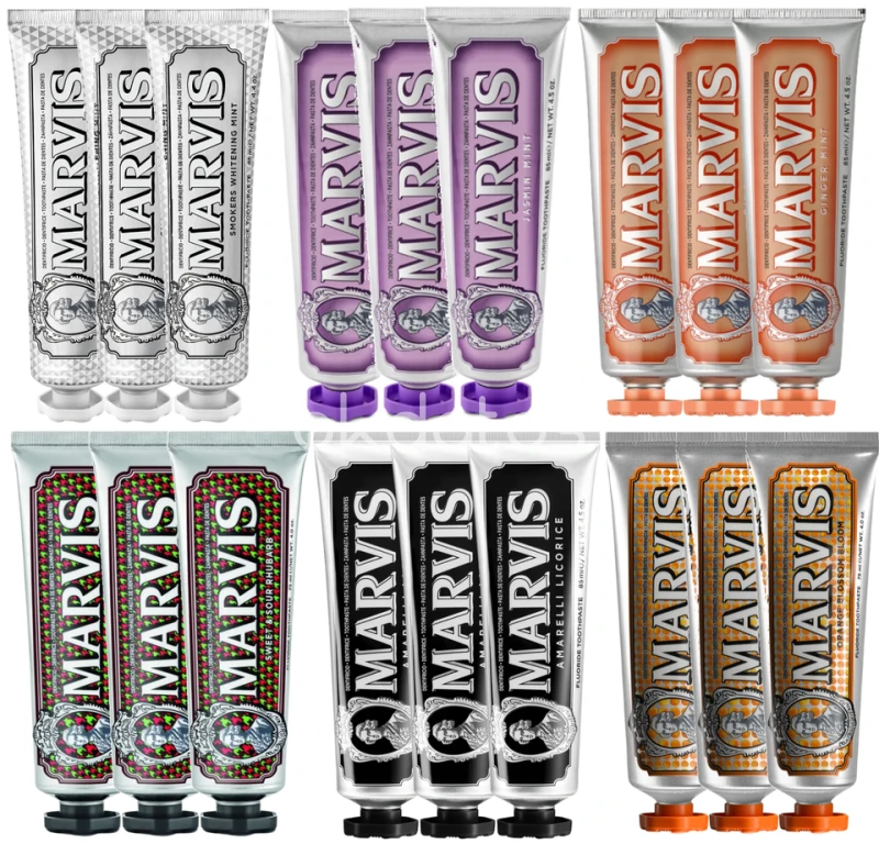 Marvis Pasta de Dientes Menta Fuerte, Menta Blanqueadora, Amarelli, Azahar - 85ml