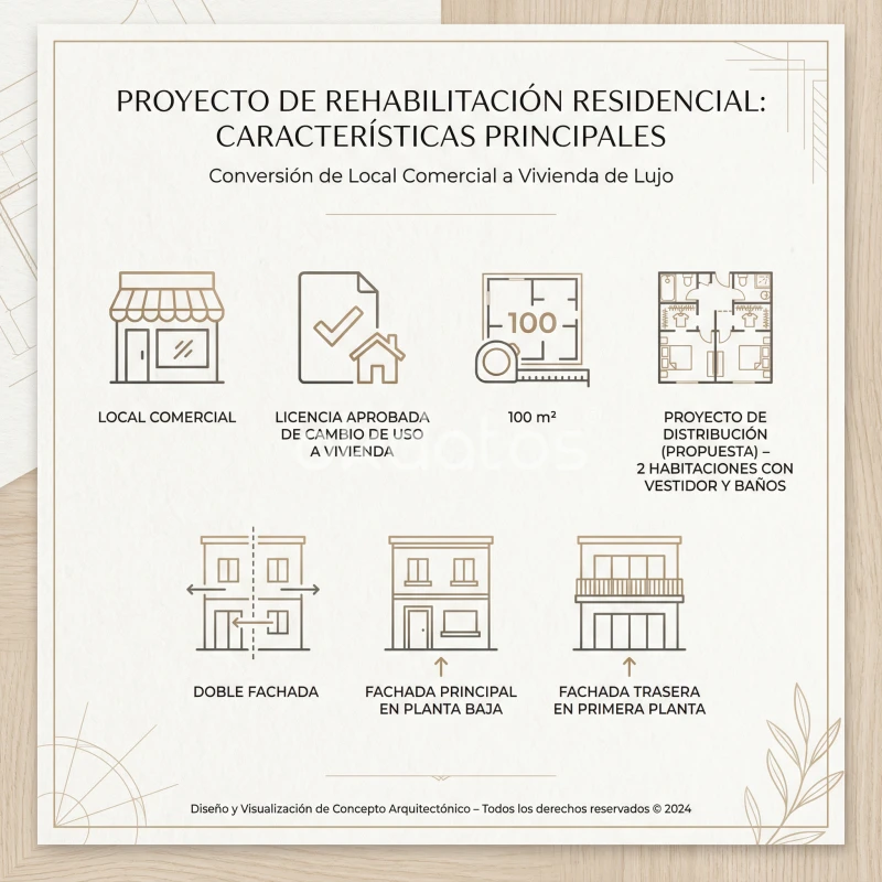 Oportunidad única de inversión y vivienda Local en venta por 195.000 €, con licencia concedida para cambio de uso a vivienda, ideal para vivienda familiar o inversión. El inmueble cuenta con 100 m² según proyecto existente, diseñado para ofrecer comodidad y funcionalidad. El proyecto contempla una vivienda tipo dúplex (bajo y primera planta) con doble fachada, lo que garantiza una excelente luminosidad y ventilación natural. La distribución incluye 2 amplias habitaciones con vestidor, 2 baños completos y trastero, pensados para un estilo de vida moderno y confortable. Ubicación inmejorable, cerca de la playa, centro comercial, colegios, centro urbano y supermercados, con todos los servicios a pocos minutos. Una propiedad con gran potencial, perfecta tanto para quienes buscan crear su hogar a medida como para inversores que deseen alta rentabilidad en una zona muy demandada. 📍 No dejes pasar esta oportunidad.