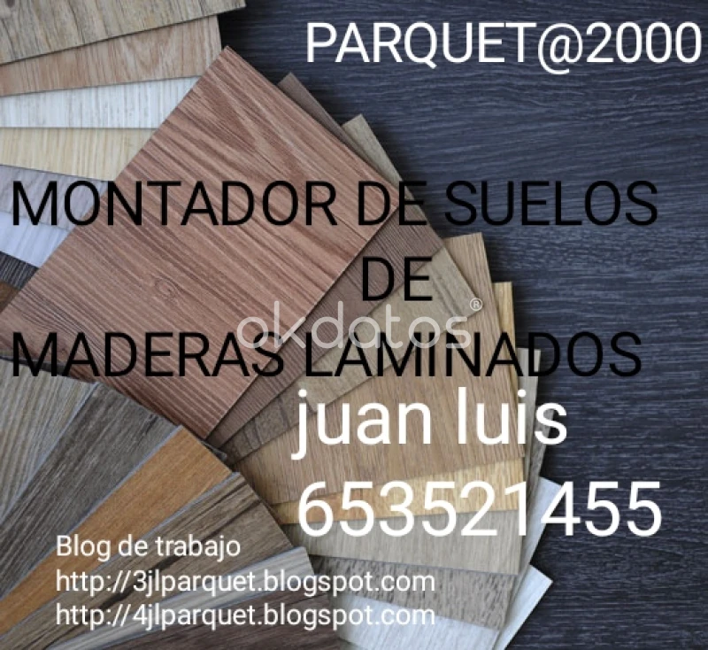 TARIFA 2 0 2 5 P A R Q U E T @ 2 0 0 0 DISTRITO SEVILLA ESTE Presupuesto por whatssapp. 653 52 14 55 Juan Luís INSTALAMOS TODAS LAS MARCA DE SUELOS LAMINADOS Y FRISOS Empresa dedicada a la instalación de suelos de maderas laminados, tarimas vinilos, pvc y revestimiento de paredes con frisos desde 1998. Trabajamos con:Empresas de Reformas,Constructoras ,Particulares,Instalaciones en vivienda,locales ,comercios , apartamento aticos, apartamento turísticos , hoteles, oficinas clinica SEVILLA ESTE CONSULTE PRECIO INSTALACION EN LOS MUNICIPIO EN DONDE SE REALIZAN LOS MONTAJES DE SUELOS SEVILLA CAPITAL MUNICIPIO MONTAJE DE SUELOS DE MADERAS LAMINADOS DESDE 9,00 € METRO/2 CORTE DE PUERTA DE ENTRADA 60 € CORTE DE PUERTA INTERIOR 10 € UNIDAD MOVER MOBILIARIO DESDE 90 € QUITAR PLINTO DE VIVIENDA DESDE 180 € COMPLEMENTO DISCO Y CUCHILLAS 30 € Blog de trabajos terminados http://jlparquet.blogspot.com Blog de trabajos terminados http://2jlparquet.blogspot.com Blog de trabajos terminados http://3jlparquet.blogspot.com Blog nuevo 2020 http://4jlparquet.blogspot.com Video trabajos https://www.youtube.com/watch?v=FiwEW_N6Tic https://www.youtube.com/watch?v=E8iRotLFdBU enero 2020 https://www.youtube.com/watch?v=nvK5gB9V96g diciembre 2019 https://www.youtube.com/watch?v=Achw8lQSbA0 junio 2020 https ://www.youtube.com/watch?v=RF4lQze4izo septiembre 2021 https://youtu.be/LBIiJTtVjow mayo 2022 https://youtu.be/HZSIN9aQE50 abril 2022 https://youtu.be/VQT3M4ALHyA marzo 2021 https://youtu.be/8p7QdkBgQl0 DICIEMBRE 2022 https://youtu.be/DRH9tYYHFX4 FEBRERO 2023 https://youtu.be/fBHQhf2c8WQ 28 DICIEMBRE 2024 https://youtube.com/shorts/RTwXT7iS0m0?si=EXgz5CrZr81FCCcr enero 2025 https://youtube.com/shorts/FoVqdmw1Fgk?si=ph5qbCKrQ9ORQRbX 16 DICIEMBRE 2024 TIK TOK VIDEO https://youtube.com/shorts/cUROb2xZtgw?si=DR7ukabmiYimptMd CANAL YOUTUBE https://www.youtube.com/@presupuestojlparquecastano1547/videos correo electrónico presupuestojlparquet19@gmx.com (TODO LOS MONTAJES TIENE UNA GARANTIA DE 2 AÑOS POR ESCRITO ) ATENCION (DE NADA SIRVE ADQUIRIR EL MEJOS SUELOS SI NO ES INSTALADOR POR UN PROFESIONAL CUALIFICADO) Presupuesto por whatssapp Montador: 653 52 14 55 Juan Luís.