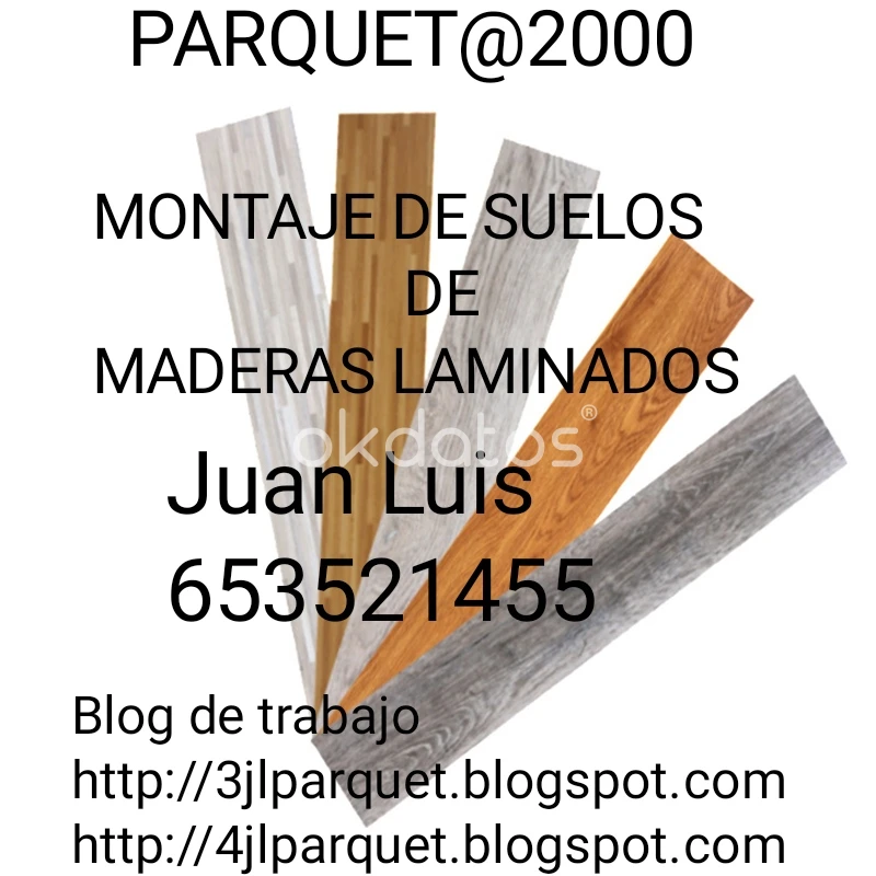 TARIFA 2 0 2 5 P A R Q U E T @ 2 0 0 0 MUNICIPIO SEVILLA Presupuesto por whatssapp. 653 52 14 55 Juan Luís INSTALAMOS TODAS LAS MARCA DE SUELOS LAMINADOS Y FRISOS Empresa dedicada a la instalación de suelos de maderas laminados, tarimas vinilos, pvc y revestimiento de paredes con frisos desde 1998. Trabajamos con:Empresas de Reformas,Constructoras ,Particulares,Instalaciones en vivienda,locales ,comercios , apartamento aticos, apartamento turísticos , hoteles, oficinas clinica MUNICIPIO SEVILLA CONSULTE PRECIO INSTALACION EN LOS MUNICIPIO EN DONDE SE REALIZAN LOS MONTAJES DE SUELOS SEVILLA CAPITAL MUNICIPIO MONTAJE DE SUELOS DE MADERAS LAMINADOS DESDE 8,00 € METRO/2 CORTE DE PUERTA DE ENTRADA 60 € CORTE DE PUERTA INTERIOR 10 € UNIDAD MOVER MOBILIARIO DESDE 90 € QUITAR PLINTO DE VIVIENDA DESDE 180 € COMPLEMENTO DISCO Y CUCHILLAS 30 € Blog de trabajos terminados http://jlparquet.blogspot.com Blog de trabajos terminados http://2jlparquet.blogspot.com Blog de trabajos terminados http://3jlparquet.blogspot.com Blog nuevo 2020 http://4jlparquet.blogspot.com Video trabajos https://www.youtube.com/watch?v=FiwEW_N6Tic https://www.youtube.com/watch?v=E8iRotLFdBU enero 2020 https://www.youtube.com/watch?v=nvK5gB9V96g diciembre 2019 https://www.youtube.com/watch?v=Achw8lQSbA0 junio 2020 https ://www.youtube.com/watch?v=RF4lQze4izo septiembre 2021 https://youtu.be/LBIiJTtVjow mayo 2022 https://youtu.be/HZSIN9aQE50 abril 2022 https://youtu.be/VQT3M4ALHyA marzo 2021 https://youtu.be/8p7QdkBgQl0 DICIEMBRE 2022 https://youtu.be/DRH9tYYHFX4 FEBRERO 2023 https://youtu.be/fBHQhf2c8WQ 28 DICIEMBRE 2024 https://youtube.com/shorts/RTwXT7iS0m0?si=EXgz5CrZr81FCCcr enero 2025 https://youtube.com/shorts/FoVqdmw1Fgk?si=ph5qbCKrQ9ORQRbX 16 DICIEMBRE 2024 TIK TOK VIDEO https://youtube.com/shorts/cUROb2xZtgw?si=DR7ukabmiYimptMd CANAL YOUTUBE https://www.youtube.com/@presupuestojlparquecastano1547/videos correo electrónico presupuestojlparquet3@protonmail.com (TODO LOS MONTAJES TIENE UNA GARANTIA DE 2 AÑOS POR ESCRITO ) ATENCION (DE NADA SIRVE ADQUIRIR EL MEJOS SUELOS SI NO ES INSTALADOR POR UN PROFESIONAL CUALIFICADO) Presupuesto por whatssapp Montador: 653 52 14 55 Juan Luís.
