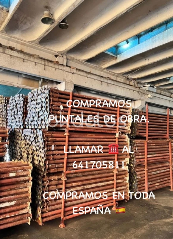 ✅ COMPRO materiales de construcción Llamar ☎️ al 641 705 811 por teléfono (no por watsapp) Para el watsapp (641 326 483) Usados en toda España: - Puntales regulables - Chapa de muro y de pilar (metálica, fenólica o contrachapada etc) - mecano (barras de 3,4,5 m etc.) - Tableros de encofrado - Andamios 📌 Material sin daños graves(en condiciones aceptables) 📌 Pagamos AL CONTADO. 📌 Recogida a nivel nacional (organizamos transporte).