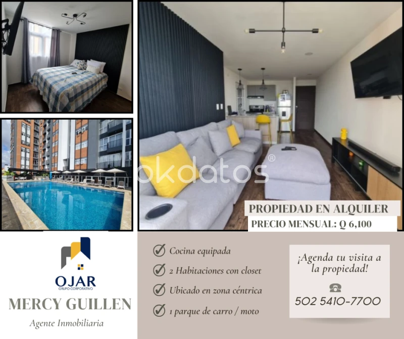 RENTA APARTAMENTO EN ZONA 11 PARQUE SAN JORGE 2 HABITACIONES
