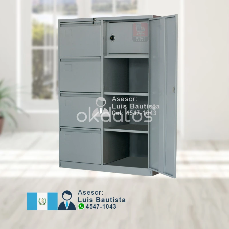 ARCHIVO COMBINADO, DE 4 GAVETAS, CAJA DE SEGURIDAD Y ARMARIO DE 2 ENTREPAÑOS