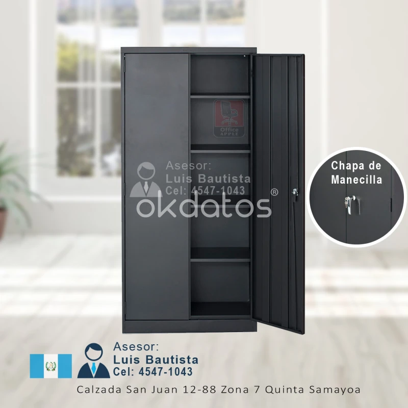 Oferta, Oferta ! Ahora puedes adquirir este elegante Armario Office de Luxe el cual fabricamos con lamina de metal de gran calidad, con dos puertas abatibles con chapa de manecilla, Trae cuatro entrepaños que puedes mover según la altura que necesites, Miden 191 centímetros de alto, 89 centímetros de ancho y 36 centímetros de fondo. Pídelo a mi contacto: será un gusto atenderte