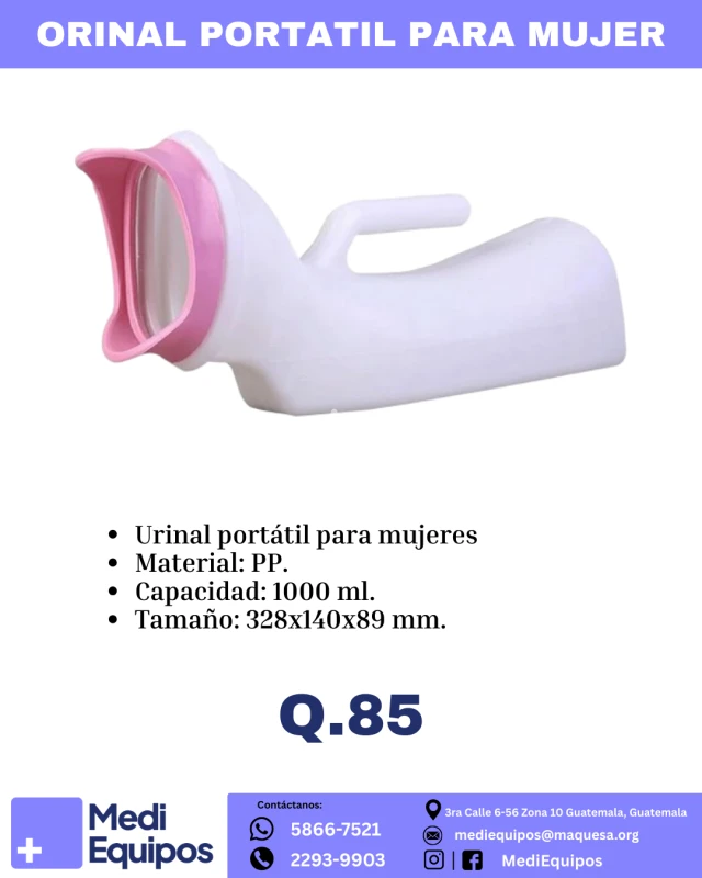 💥 ¡SOLUCIÓN PRÁCTICA, HIGIÉNICA Y URGENTE! 💥 🚫 Basta de incomodidades 🚫 Basta de riesgos innecesarios ✔️ Diseño anatómico y fácil de usar ✔️ Material resistente y reutilizable ✔️ Capacidad de 1000 ml ✔️ Ideal para viajes, hospitales, adultos mayores o pacientes 🔥 PERFECTO para clínicas, hogares y emergencias *Super Precio: Q.85 ⚠️ Producto de alta demanda – se agota rápido ⚠️ 📲 ¡ORDENA YA! 📞 5866-7521 📞 2293-9903 📧 mediequipos@maquesa.org 💣 NO ESPERES A NECESITARLO… TENLO LISTO HOY