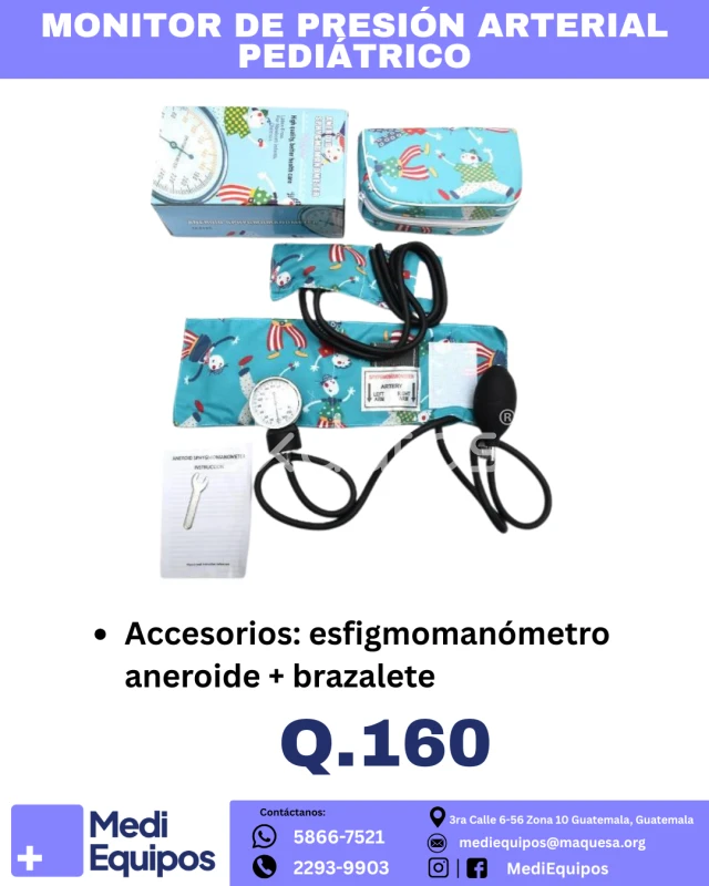 *Control preciso para los más pequeños *¿Para qué sirve? *Mide la presión arterial en niños de forma manual, ideal para uso clínico o en casa. * Beneficios: * Medición confiable y precisa * Diseño pediátrico cómodo * Fácil de usar * Ideal para clínicas, hospitales y uso doméstico ¡Super Precio: Q.160 * Contáctanos: 5866-7521 / 2293-9903 *Correo: mediequipos@maquesa.org *Visítanos: Zona 10, Guatemala