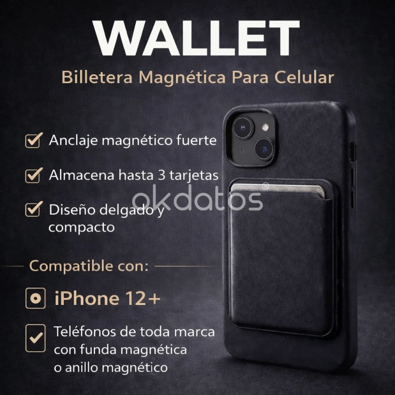 Diseñada para quienes buscan practicidad sin añadir volumen. Su anclaje magnético firme permite una sujeción segura al dispositivo, manteniendo un perfil delgado y elegante. • Anclaje magnético fuerte • Capacidad para hasta 3 tarjetas • Diseño compacto y funcional • Acabado resistente y minimalista Compatible con: iPhone 12 en adelante Teléfonos de toda marca con funda magnética o anillo magnético ‼️Envío gratis‼️