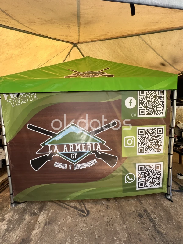 Ofrecemos toldos publicitarios con lona incluida y logos pegados directamente en la lona para un acabado limpio y profesional. Son ideales para eventos, ferias, puestos de venta y activaciones de marca. Son resistentes, llamativos y totalmente personalizables para que tu marca destaque desde lejos.