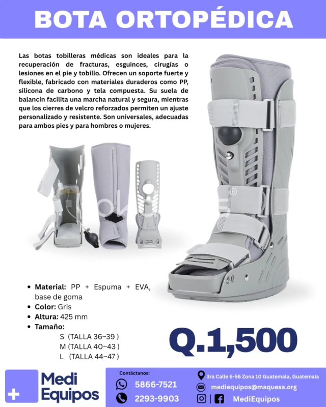 🦶 BOTA ORTOPÉDICA Ideal para recuperación de fracturas, esguinces, cirugías o lesiones en pie y tobillo. Ofrece soporte fuerte y flexible, con materiales duraderos y ajuste personalizado. ✅ ✅ Material: PP + Espuma + EVA, base de goma ✅ Color: Gris ✅ Altura: 425 mm ✅ Tamaños: S (36-39), M (40-43), L (44-47) 💥Super Precio: Q. 1,500 📩 ¡Envíanos un mensaje vía WhatsApp o llámanos 5866-7521 | 2293-9903 para pedir la tuya! 📍 3ra Calle 6-56 Zona 10, Guatemala