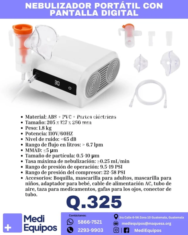 NEBULIZADOR PORTÁTIL ¡TRATAMIENTOS RESPIRATORIOS EN CUALQUIER LUGAR! Nebulizador Portátil con Pantalla Digital - Super Precio:Q.325 * Control preciso para tratamientos efectivos *Pantalla digital clara *Mascarillas para adultos, niños y bebés * Uso silencioso <65dB * Material resistente y duradero * Ubicados en Zona 10 Guatemala City * ¡Envía mensaje DIRECTO para más detalles! 5866-7521