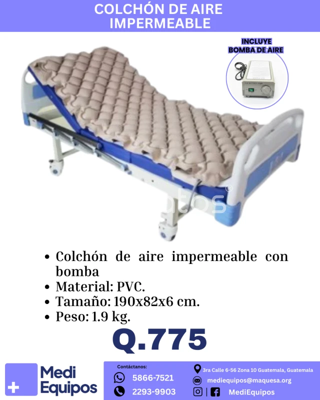 ¡COLCHÓN DE AIRE PARA MAYOR COMODIDAD Y CUIDADO! 💧 * Impermeable con bomba de aire incluida *Material: PVC resistente *Tamaño: 190x82x6 cm *Peso: 1.9 kg *SUPER PRECIO: Q.775 *Encuéntralo en MediEquipos: *Para consultas o pedidos directos contáctanos Teléfonos: 5866-7521 / 2293-9903 *Correo: mediequipos@maquesa.org