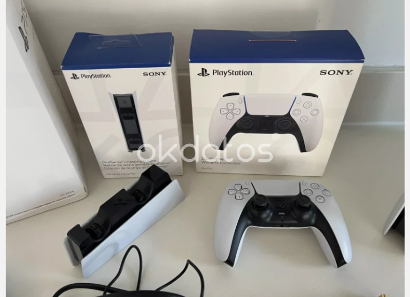 Consola PlayStation 5 - Unidad de disco (ya instalada en la PS5)・Control inalámbrico DualSense・2 bases horizontales・Cable de alimentación・Cable HDMI (Ultra High Speed compatible con el estándar HDMI v2.1)・Cable USB (USB Tipo-C a Tipo-C)・Materiales impresos (Guía de inicio rápido/Guía de seguridad)・ASTRO'S PLAYROOM (preinstalado) NOTA: Incluye 2 controles y 10 juegos gratis