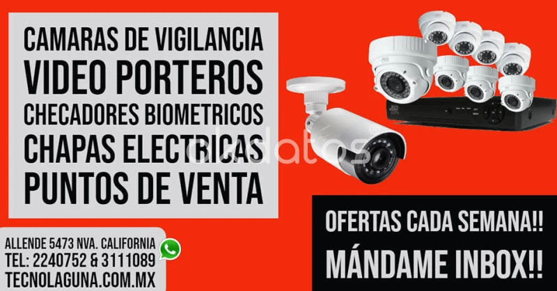 🎥🎥CAMARAS DE VIGILANCIA, 👍CONTROL DE ACCESO, 🖲BOTON DE PANICO, 🔊🔊ALARMAS, BARRAS. ¡Llama Ahora! - Asesoría Sin Compromiso 📞📞 Teléfono: (871) 2240752 ) 📞📞 Whatsapp (871) 3111089 ✉ ventas@tecnolaguna.com.mx visítanos en Av. Allende No. 5473-a. Col. Nueva California, Torreón, COAH. Mapa: https://goo.gl/m5vWRu Beneficios: - Protege tu negocio - Puedes checar tus cámaras en cualquier parte del mundo accediendo desde un celular, Tablet, o laptop con acceso a internet. - Revisa las grabaciones de video del dia de manera fácil - Protege y modernizas tu negocio u hogar ACEPTAMOS TARJETAS DE CREDITO Y DEBITO Para mas información visita nuestro sitio web: http://tecnolaguna.com.mx/circuito-cerrado-y-alarmas/