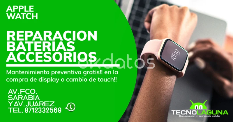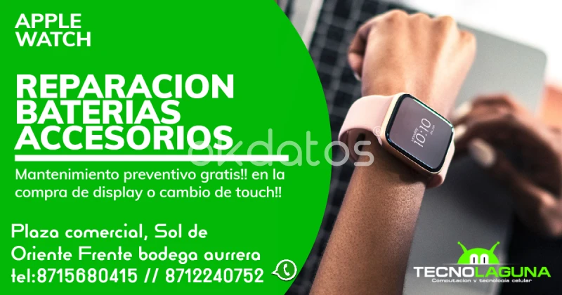 REPARACION IPADS IPHONES REPARACION DE IPAD, IPOD, IPHONE, MACBOOK, IMAC, APPLE WATCH, TODAS LAS VERSIONES Tipos de Daño o Problemas: LIBERACION,DESBLOQUEO,ACTIVACION, • • Reparación de equipos Mojados • • Centro de Carga • • Puerto de Audio • • Botón de HOME • • Software/ office para mac • • Cambio de carcasa • • No Funciona la Pantalla TOUCH • • Pantalla LCD, baterías • Venta de accesorios y cargadores • Reparación de Hardware, Tarjetas electrónicas • • Técnicos Especializados • • Cambio de tapa trasera y cristal de cámaras MACBOOK • Diagnóstico • Instalación y actualización de software • Reemplazo de batería • Soporte técnico en software & hardware • Mantenimiento Preventivo o Correctivo, reparación electrónica a componente • Memoria Certificada RAM para Mac, cargadores, teclados y pantallas. REPARACION, MANTENIMIENTO DE IPOD, IPHONE, IPAD, MACBOOK, IMAC, APPLE WATCH EN TORREON COAHUILA ¡PAGINAS WEB Y POSICIONAMIENTO EN GOOGLE Y REDES SOCIALES, AUMENTA TUS VENTAS LLAMANOS!! Visítanos en: Sucursal Xochimilco: Av. Xochimilco no. 120-A Col. Nueva california a una cuadra de soriana oriente. TEL 8712980487 (WhatsApp) Sucursal allende: Av. Allende No. 5473-a. Col. Nueva California, Torreón, COAH, C.P. 27089 Mapa: https://maps.google.com.mx/maps?ll=25.540711,-103.387559&z=17&cid=9475763304123915195&q=Tecnolaguna&output=classic&dg=ntvb COTIZACIONES: ventas@tecnolaguna.com.mx Teléfonos: (871) 2240752 (WhatsApp) (871) 3111089 (WhatsApp) Sitio Web: www.tecnolaguna.com.mx ACEPTAMOS TARJETAS DE CREDITO Y DEBITO CONTAMOS CON SERVICIO DE RECOLECCION DE EQUIPOS A DOMICILIO: TORREON GOMEZ PALACIO LERDO MATAMOROS ¡Síguenos en las Redes Sociales! https://www.facebook.com/tecnolaguna.torreon https://tecnolaguna.com.mx/portafolio.html