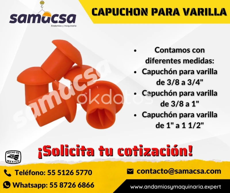 Protege a tu equipo, evita accidentes. Los capuchones o tapones de seguridad para varilla son un implemento esencial en zonas de trabajo con riesgo de contacto con varillas expuestas. Están diseñados para evitar golpes, raspones y otros accidentes causados por las salientes laterales de varillas en áreas de tránsito frecuente. 🛠️ Características: Compatibles con varillas de distintos diámetros: De 3/8” a 3/4” De 3/8” a 1” De 1” a 1 ½” Fáciles de instalar y reutilizables. Fabricados con materiales duraderos y resistentes a la intemperie. 🚚 Envíos a todo México. 💼 Cotizaciones sin compromiso. 📲 Contacto directo: Roberto Arellano – Asesor Comercial 📞 Tel: 55 8726 6866 ✉️ Email: contacto@samacsa.com 🔍 Descubre más productos en: 🌐 www.andamios.expert 🌐 www.bandadepvc.mx 🌐 www.andamiosymaquinaria.expert SAMACSA – Andamios y Maquinaria Ligera ✅ Calidad garantizada | ✅ Atención personalizada | ✅ Entrega puntual