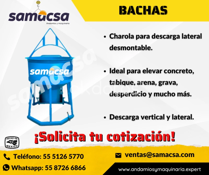¿Necesitas mover concreto fresco o materiales de construcción de forma eficiente? Nuestras bachas para elevación de concreto son la solución ideal, especialmente recomendadas para colado de losas o trabes en zonas de difícil acceso. ✅ Diseñadas para facilitar la distribución del concreto en obra ✅ Fabricadas con materiales de alta resistencia ✅ Disponibles en diferentes capacidades, según tus necesidades: Modelos disponibles: • HQ-500 – Capacidad: 382 litros • HQ-750 – Capacidad: 573 litros • HQ-1000 – Capacidad: 764 litros • HQ-1500 – Capacidad: 1,146 litros • HQ-2000 – Capacidad: 1,528 litros 📦 Envíos a toda la República Mexicana 💬 Cotizaciones sin compromiso 🔧 Conoce más de nuestros equipos: 🌐 www.andamios.expert 🌐 www.bandadepvc.mx 🌐 www.andamiosymaquinaria.expert 📞 Asesor Comercial: Roberto Arellano 📱 55 8726 6866 📧 contacto@samacsa.com