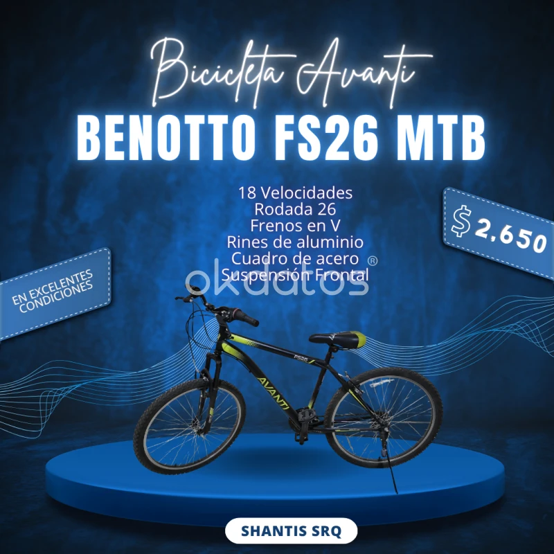 Bicicleta Benotto Avanti MTB FS26 En excelentes condiciones, muy poco uso Entregas en Tultitlán, en la Col. Jardines de la Cañada.