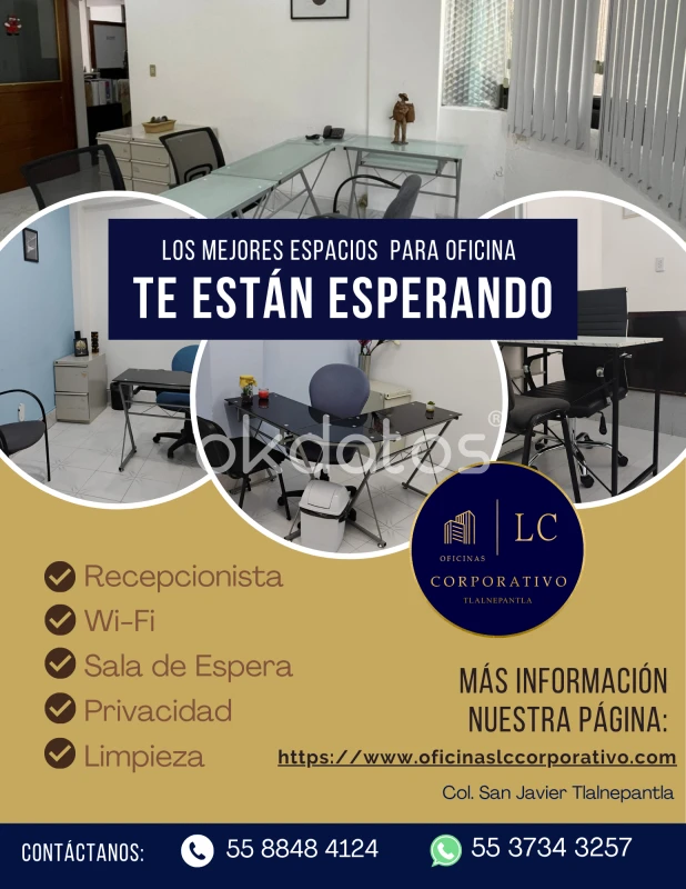 ¿Buscas una imagen profesional y presencia en una de las ubicaciones con mayor crecimiento en la Ciudad? 💼 ✨ Oficinas Físicas, Virtuales y por Hora Obtén todos los beneficios altos costos: ✔️ Domicilio fiscal y comercial ✔️ Recepción de correspondencia ✔️ Atención telefónica personalizada ✔️ Proyección profesional para tus clientes 📍 Ideal para emprendedores, freelancers y empresas en expansión. 🎯 Trabaja Cuando tú lo decidas, nosotros proyectamos tu empresa. 💡 Ahorra dinero, gana presencia y trabaja desde cualquier lugar. Contáctanos hoy mismo y lleva tu negocio al siguiente nivel. Para más información: Teléfono: 55 88484124 WhatsApp: 55 37343257 💬 WhatsApp: https://wa.link/29xo7k Correo: tlalnepantlalccorporativo@gmail.com Sitio web: https://www.oficinaslccorporativo.com