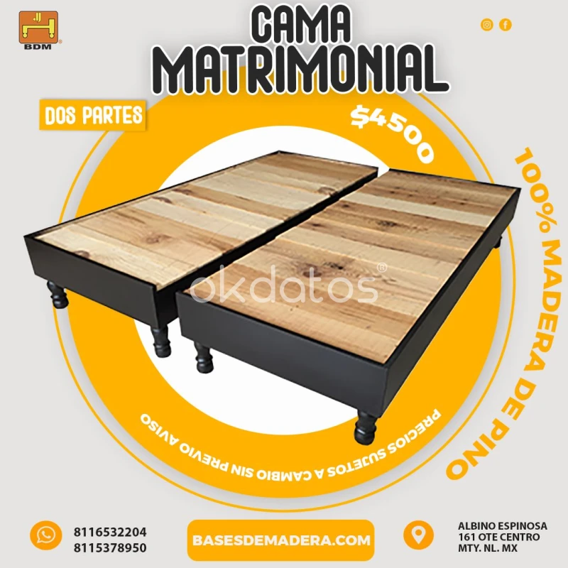 Base Matrimonial en Dos partes , 100% de madera de pino !!!