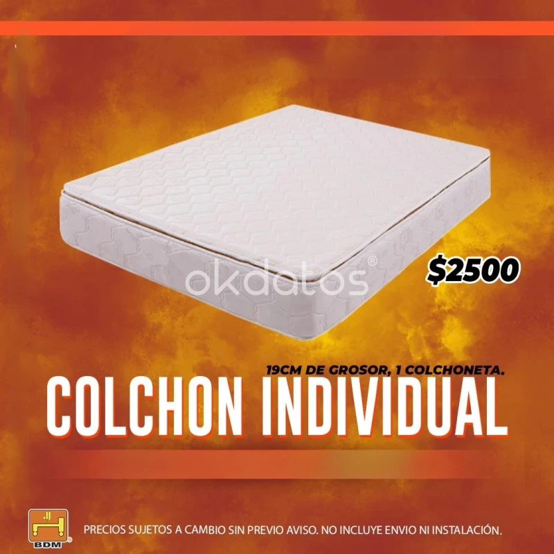 Colchón individual económico en Monterrey, 19 cm de grosor, ideal para descanso cómodo y soporte básico. Precio accesible $2500, opción perfecta para estudiantes, recámaras pequeñas o uso diario. Venta de colchones en Monterrey con envío a domicilio. Compra colchón individual barato, cómodo y funcional en BasesdeMadera.com Llama al : Tel: 8116532204 ó Visítanos de Martes a Viernes de 10: 30am-6: 00pm y Sábados de 10: 30am - 5: 00pm en Albino Espinosa 161 ote, Centro Mty N. L, Mx - Monterrey, Nuevo León
