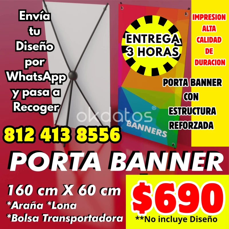 PORTA BANNER Con LONA 💥 Estructura de Alta Resistencia ✅️ .60 x 1.60 mts. .80 x 1.80 mts. 💥LONAS URGENTES MTY🔥💯 $90 M2.⚡ ENTREGA 3 HORAS. ENVÍA TU ARCHIVO 📧 ☎️ 812 413 8556 8️⃣1️⃣2️⃣4️⃣1️⃣3️⃣8️⃣5️⃣5️⃣6️⃣ WhatsApp en este link 📲 https://wa.link/bpq0jp https://wa.me/p/6284758531649275/5218124138556 Tel. Imprenta: ☎️ 818344.0571 Para Mayor info y Rapidez enviar WHATSAPP al: 812 413 8556 🔥LONA IMPRESA $90 m2 🔥💯 ✅ Impresión ALTA CALIDAD ❌NO INCLUYE DISEÑO ⭐️Diseño desde $150 Contamos con Servicio Express en 3 HORAS Sin Costo Extra⚡️🔥 Tenemos varias Promociones con Tiempo de Entrega Express en: ✅️ LONAS IMPRESAS ✅️ VOLANTES ✅️ TARJETAS ✅️ IMANES PUBLICITARIOS ✅️ VINIL ADHESIVO ✅️ MICROPERFORADO ✅️ CANVAS Y POSTERS ✅️ SELLOS DE GOMA ✅️ NOTAS, RECIBOS Y MAS.. Somos Imprenta con Local Establecido 20 años de Experiencia Contamos con Envío a Domicilio 📦 $90 (Envío con Tiempo de Entrega de 1 Día) ** Envío Urgente Mismo Día: (Aplica Costo Adicional según la Zona) El Diseño o archivo (s) a imprimir se envían en: ⚠️✅👇🏻 .PDF o en .JPG con Buena Resolución al Correo o al WHATSAPP: 812 413 8556 WhatsApp en este link 📲 https://wa.link/bpq0jp