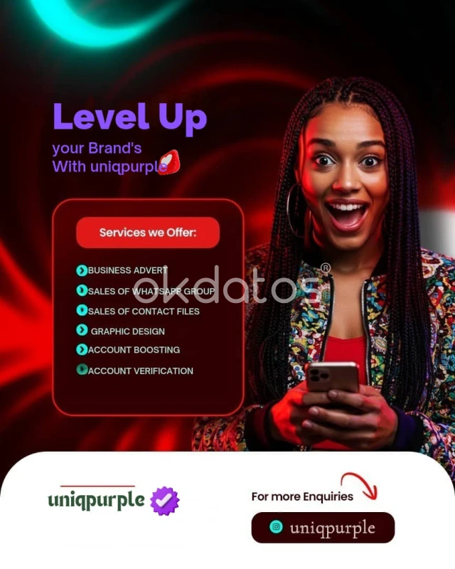 Stop the vendor hustle! We are your single, dedicated partner to help you Launch Faster and Scale Smarter across all fronts. We've bundled every essential service, from building your digital empire and securing your foundation to sourcing unique products and daily essentials. 1. Audience Power-Up & Digital Scaling (The "Blow" Package) Tired of having a group full of ghosts and silent members? Forget that! It's time to stop the magomago and power up your community with verified, proper, and active Nigerians from all 36 states! Whether you're running a serious business or setting up a happening spot for entertainment, we bring the fire! Verified Audience Acquisition: We fill your groups with genuine, bona fide Nigerians—no fake turenchi! Get active members for your WhatsApp Groups and access to high-traffic WhatsApp Marketing Grouplinks. Targeted Ad Management: Full expert management of campaigns across Facebook, Instagram, Google, and TikTok ADs to get your business soaring to new heights. Website & SEO Growth: Website Promotion with targeted traffic and Search Engine Optimization (SEO) strategies to boost your ranking and drive free, organic traffic. Account & Presence: Followers, Likes, Comments Boosting, Social Media Management, Account Verification, and services to get your WhatsApp account Unbanned. 2. Business Foundation, Tech & Transactions Establish a legitimate and professional footing, and automate your sales process for massive efficiency. Business Legitimacy: Full support for CAC Official Registration and professional Business Email Setup for instant credibility. Payment Gateways: Access and setup for essential international and local payment services, including PayPal and Paystack. Web & Automation: Custom, sharp Website Design, secure Cloud Hosting & Domain registration, and intelligent WhatsApp Bots for 24/7 engagement. Global Assets: Access to ALL COUNTRIES NUMBERS, GET AN INTERNATIONAL NUMBER, and Verified International Accounts (like US/UK merchant accounts) to accelerate global transactions. 3. Sourcing, Logistics & Unique Supply We handle your essential equipment, creative tools, and even the most unique supply needs. Stop the scatter-scatter approach! Trusted Sourcing: Access to Verified Nigerian Factory Supplier Contacts to secure your supply chain. Daily Essentials: Sourcing of reliable Phones (iPhone), Power Banks, Oil & Motor Parts, and Pet Supplies (e.g., Dog Feed). Premium Tools: Access to ALL PREMIUM APPS AVAILABLE, including CANVA/Capcut Pro subscriptions, ALL MOVIE APP access, and edit photos into EXTRAORDINARY art! Wellness & Special Orders: We source unique items like Tre-En-En (Neolife supplements), Empty Azul Bottles, and handle specialized supply requests. Our Koko Promise: Fast, Correct, and Risk-Free 100% Correct: You're getting genuine, bona fide Nigerians—no fake turenchi! No Time-Wasting: Delivery is sharp-sharp! We move with speed. Most digital services are delivered within 24-48 hours. Small Money, Big Value: Our rates are affordable; you won't need to break the bank. Our Guarantee: If you don't see results within 6 hours for community services, feel free to request a full refund—no stories! WANT TO LEVEL UP? Don't dull! Reach out to us on WhatsApp now and let us help you propel your business the correct way! Come and see the difference! WhatsApp: +234 815 022 8641 Instagram: @uniqpurple