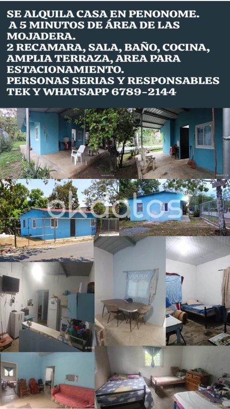 Calle de la Iglesia y Escuela, en Vista Hermosa, Cañaveral, Penonome, Cocle Alquiler de casa para los 4 días de CARNAVAL,. Ubicación accesible, a 5 minutos de el área de la MOJADERA en penonome. 2 RECAMARA Sala, Cosina, área de comedor, un baño, amplia terraza, estacionamiento para varios autos toda Cercada, portón. Vamos 350.00. Llamar al 67892144 WhatsApp.