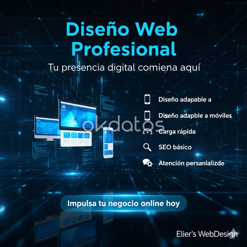 🌐 Diseño de Páginas Web + ChatBots Inteligentes 🤖 🚀 ¿Quieres que tu negocio esté en Internet de manera profesional y moderna? Te ofrezco páginas web a medida, rápidas, atractivas y fáciles de usar. ✅ Sitios web responsivos (se adaptan a PC y móviles) ✅ Integración de ChatBots automáticos para atender a tus clientes 24/7 ✅ Formularios de contacto, catálogos, tiendas online ✅ Optimización básica para Google (SEO) ✅ Actualizaciones y soporte 📌 Ideal para negocios, emprendimientos, profesionales y tiendas que desean vender más y ahorrar tiempo en atención al cliente. 💻 Trabajo serio, rápido y garantizado. 📞 Contáctame Ahora www.elierdesign.com 👉 ¡Dale a tu negocio la presencia online que merece!