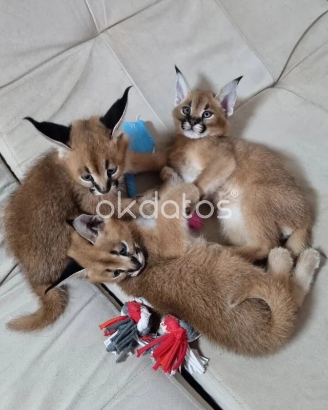 Gatitos de Ocelote, Serval y Caracal Descubra una selección excepcional de gatitos de Ocelote, Serval y Caracal, felinos raros con un encanto salvaje y una belleza impactante. Cada uno de estos animales encarna la elegancia y el exotismo, con características únicas que los hacen absolutamente inolvidables. El Ocelote, con su suntuoso pelaje jaspeado, ostenta una apariencia digna de los felinos más bellos de América. El Serval, esbelto y moteado, cautiva con su gracia natural y su mirada hipnotizante. El Caracal, por su parte, impresiona con su fuerza y sus famosas orejas adornadas con mechones negros. Nuestros gatitos se crían con esmero en un entorno controlado, se acostumbran gradualmente a la presencia humana y son supervisados por profesionales para garantizar su buena salud. Reciben una atención veterinaria rigurosa. Una oportunidad única para los amantes de los animales que desean dar la bienvenida a un felino excepcional a su hogar. Realizamos envíos a todo el mundo. WhatsApp: +33777572933