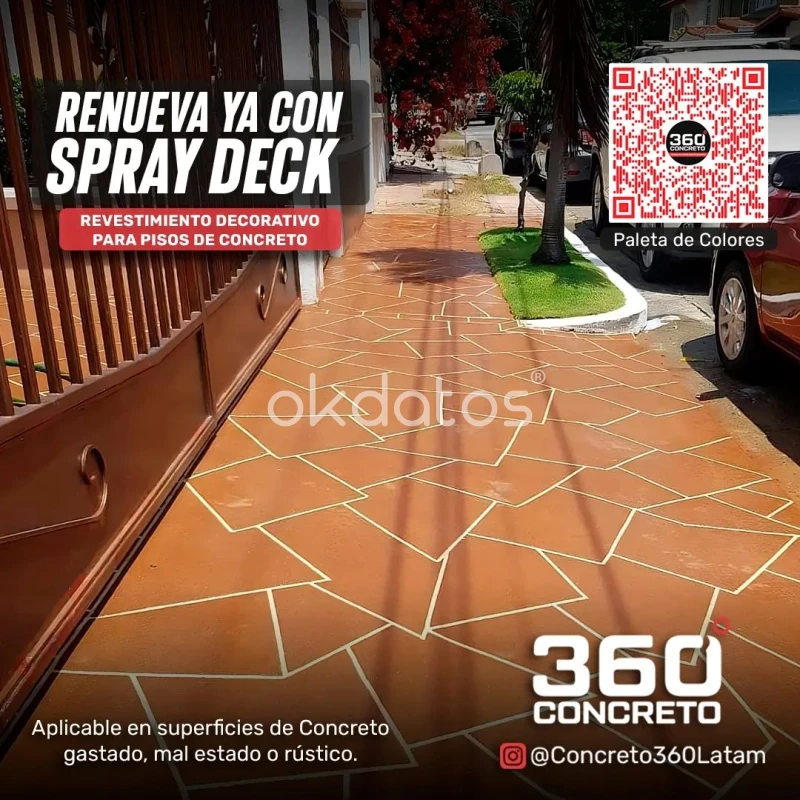 ¿Buscas renovar o mejorar tus superficies exteriores con estilo y resistencia? En Concreto 360®, somos especialistas en la instalación de Spray Deck®, un recubrimiento decorativo que transforma pisos de concreto rústico en espacios modernos, duraderos y de bajo mantenimiento. 🚘 Ideal para: • Garajes y estacionamientos • Aceras residenciales y comerciales • Terrazas y zonas al aire libre 🎨 Beneficios: • Textura antideslizante para mayor seguridad • Más de 25 colores disponibles y personalización bajo pedido • Ultra delgado (solo 3 mm) sin perder resistencia • Aplicable sobre concreto nuevo o deteriorado ✅ Acabados decorativos que resisten el tráfico vehicular y peatonal ✅ Asesoría técnica incluida ✅ Servicio disponible en Panamá Oeste y alrededores 📞 ¡Solicita tu cotización sin compromiso y transforma tus superficies con Spray Deck®!