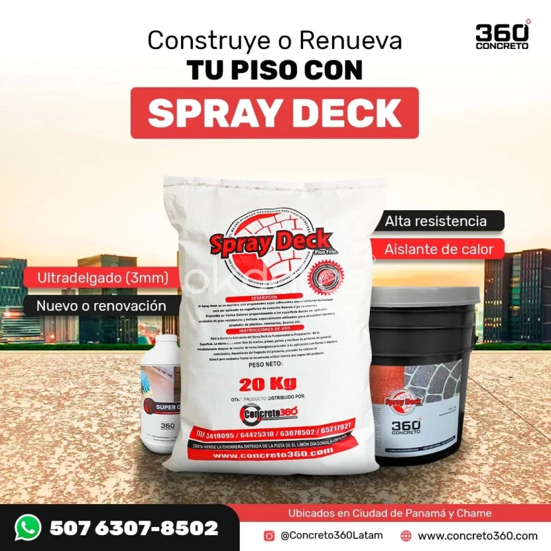¿Buscas renovar superficies de concreto con estilo y resistencia? Con nuestros materiales de Spray Deck® transforma pisos rústicos nuevos o deteriorados en superficies decorativas, modernas y fáciles de mantener. 🎨 Ventajas del producto: • Recubrimiento decorativo de solo 3 mm de espesor, ultra delgado pero resistente • Ideal para terrazas, garajes, jardines, aceras, plazas, y más • Apto para interiores y exteriores • Disponible en más de 25 colores, y fabricamos tonalidades personalizadas bajo pedido 🧩 Fácil aplicación 🛠️ Excelente adherencia 💧 Bajo mantenimiento ✅ Ideal para técnicos aplicadores, contratistas y empresas de remodelación ✅ Venta directa de materiales con asesoría incluida ✅ Envíos disponibles a toda Panamá 📞 Contáctanos para cotizar tus materiales Spray Deck® y dale a tus proyectos el acabado profesional que merecen.