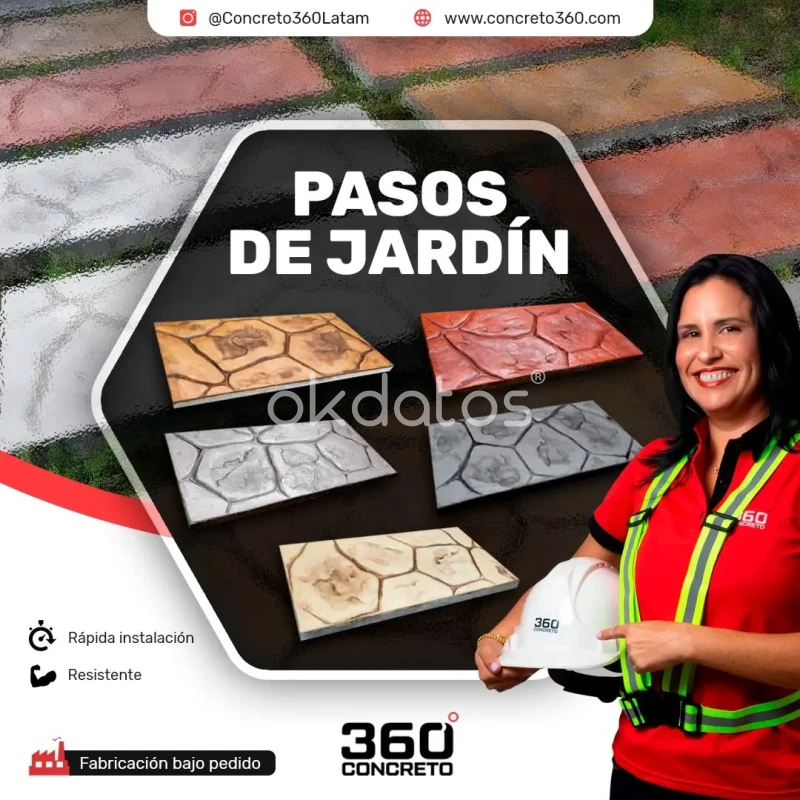 ¿Quieres darle personalidad y funcionalidad a tu jardín, terraza o área verde? En Concreto 360® te ofrecemos pasos de jardín estampados y lisos, elaborados en concreto decorativo, resistentes y con diseños únicos para transformar tus espacios exteriores. 🪴 Soluciones que ofrecemos: • Diseños estampados con texturas como piedra, adoquín, madera, hojas, entre otros • Modelos lisos con acabados modernos y minimalistas • Fabricación personalizada según tamaño, forma y estilo decorativo • Fáciles de instalar, mover y mantener • Ideales para senderos, accesos, huertos, patios y zonas húmedas 🎨 Variedad de colores disponibles 🛠️ Resistencia al clima y al tránsito peatonal ✅ Producto decorativo y funcional 📞 ¡Contáctanos y crea caminos encantadores y duraderos en tu jardín con nuestros pasos estampados y lisos!