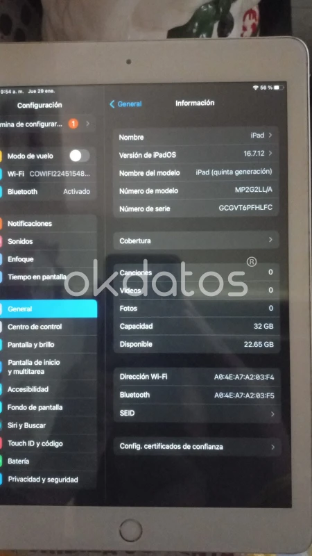Aipad 5th. Color gris. Usado/ buen estado como nuevo. Tiene su cargador( largo alcance)