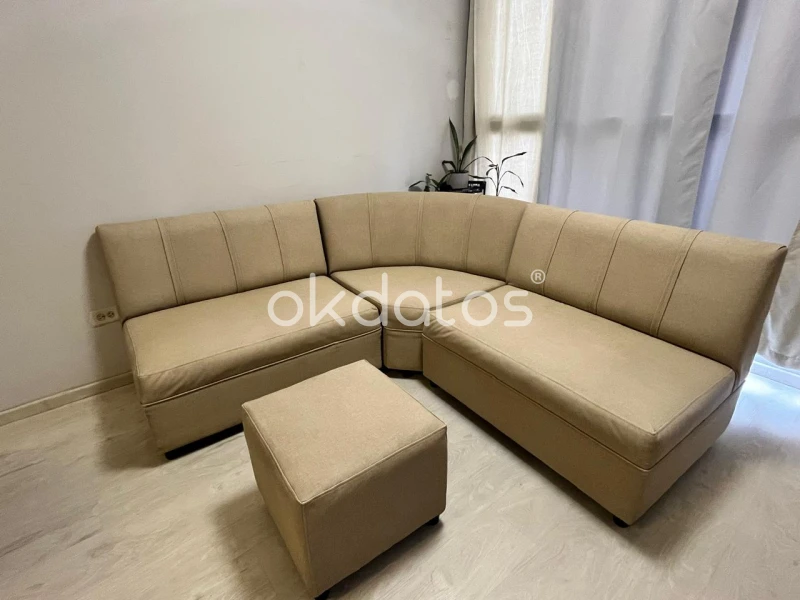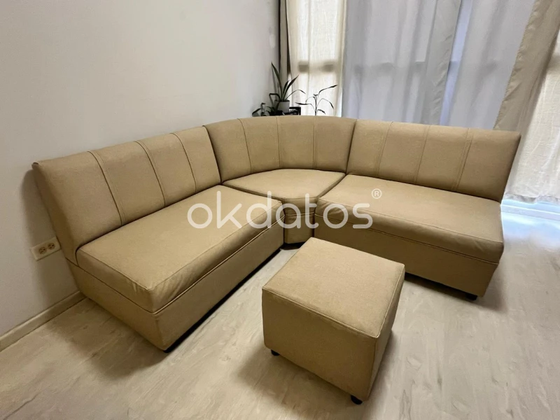 Diseño moderno y elegante, tapizado en tela impermeable, suave y resistente, ideal para uso diario. No absorbe líquidos ni manchas con facilidad y se limpia fácilmente con un paño húmedo. Estructura firme, asientos cómodos y excelente soporte. Perfecto para sala pequeña o mediana. El tono beige neutro combina con cualquier tipo de decoración. Incluye: piecero del mismo color y material. 📏 Medidas aproximadas: * Lado izquierdo: 97 cm * Lado derecho: 97 cm * Lado curvo: 94 cm * Altura total: 74 cm