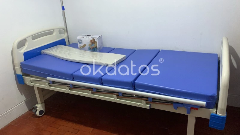Cama clínica de dos manivelas, ideal para uso hospitalario o domiciliario. Se encuentra armada y lista para usar. Cuenta con estructura metálica resistente que garantiza durabilidad y fácil mantenimiento. Permite ajustar manualmente la inclinación del respaldo y las piernas para mayor comodidad del paciente. Incluye barandas laterales abatibles, porta suero ajustable, ruedas giratorias con freno y una mesita auxiliar para comer o apoyar objetos. Además, se entrega con un colchón antiescaras, diseñado para brindar confort y prevenir molestias por permanencia prolongada. Presenta un diseño en color blanco con detalles azul clínico.