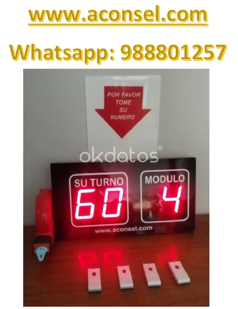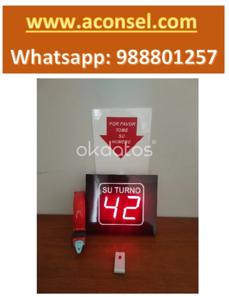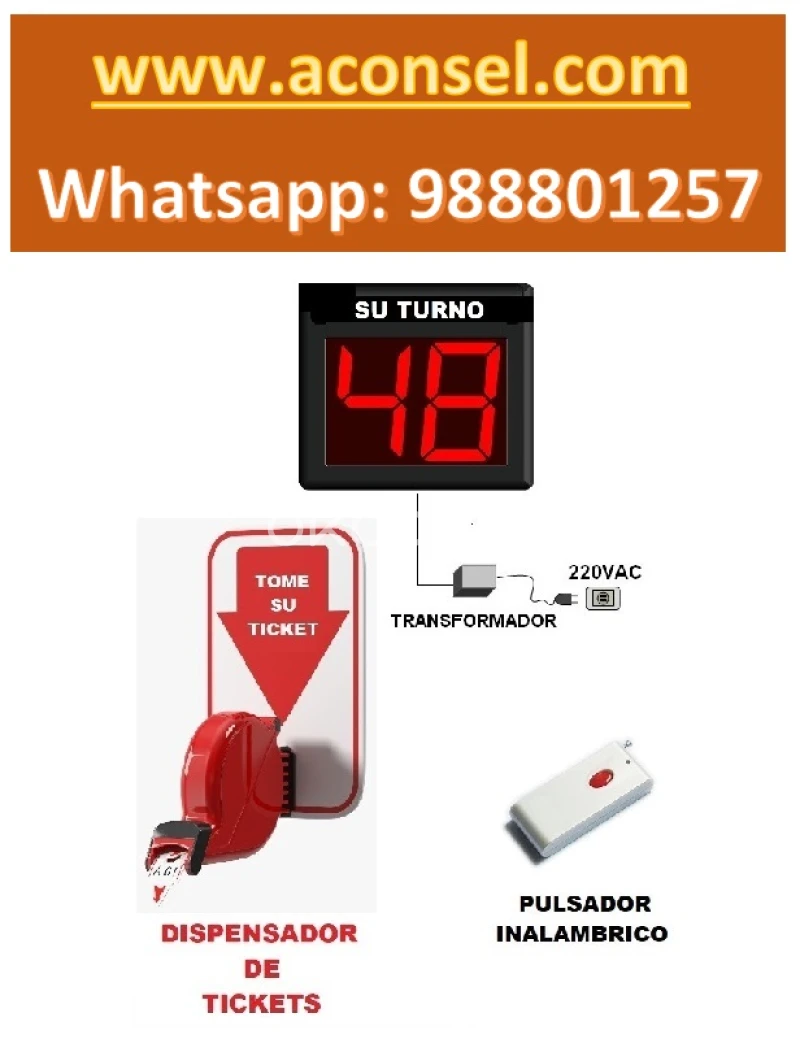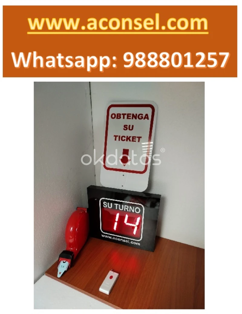 - Sistema para Control de Colas con Ticketera y Pantalla Electronica de 3 Digitos - Sistema para Control de Colas con Ticketera, Pantalla Electronica de 3 Digitos y Pulsadores Inalambricos - Sistema para Control de Colas con Ticketera, Pantalla Electronica de 3 Digitos y Software - Sistema de Turnos con Recepción - Sistema de Turnos con Pulsadores - Sistema de Turnos con Touch Screen - Relojes de Control de Asistencia - Sistemas de colas - Pantalllas de Turno - Dispensadores de Tickets - Rollos de Tickets - Paneles Electronicos - Separadores de Fila ACONSEL - Whatsapp: 988801257 - web: www.aconsel.com
