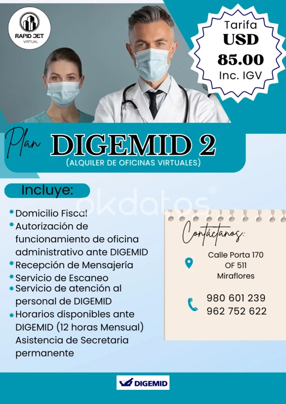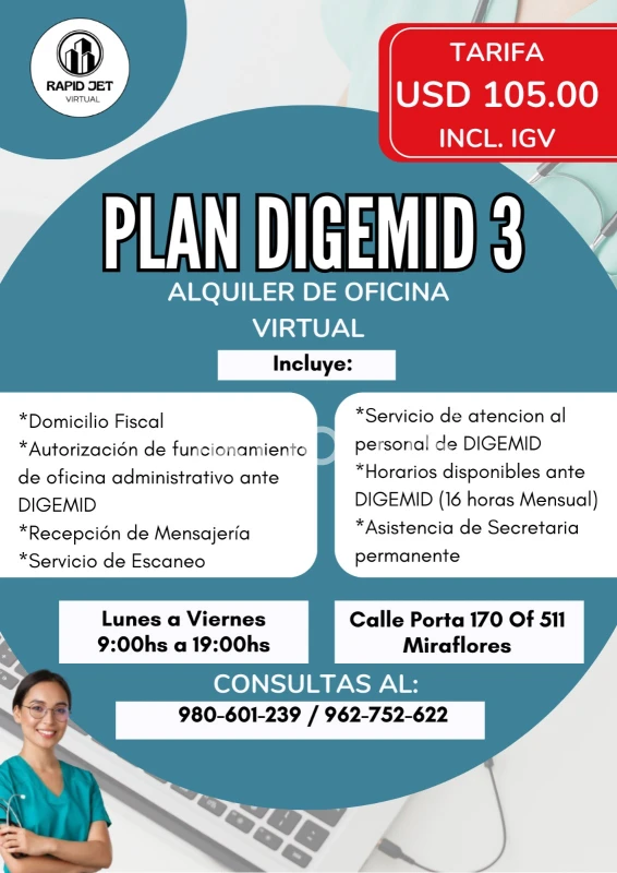 Oficina Virtual – Profesionalismo sin límites Impulsa tu negocio con una oficina virtual que trabaja por ti, estés donde estés. En Rapid Jet, te ofrecemos una presencia comercial sólida sin necesidad de invertir en un espacio físico. Con nuestra solución de oficina virtual obtienes: - Dirección fiscal con excelente ubicación. - Recepción de mensajería - Sala de reuniones Ideal para emprendedores, profesionales independientes y empresas que buscan expandirse con bajo costo y alta eficiencia. Tu empresa se ve más grande, más profesional y más confiable. * Escríbenos 954 556 533