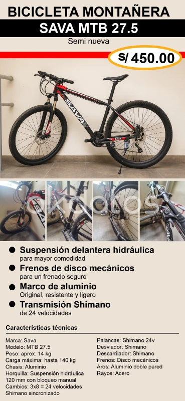 Vendo bicicleta Montañera 27.5" aluminio
