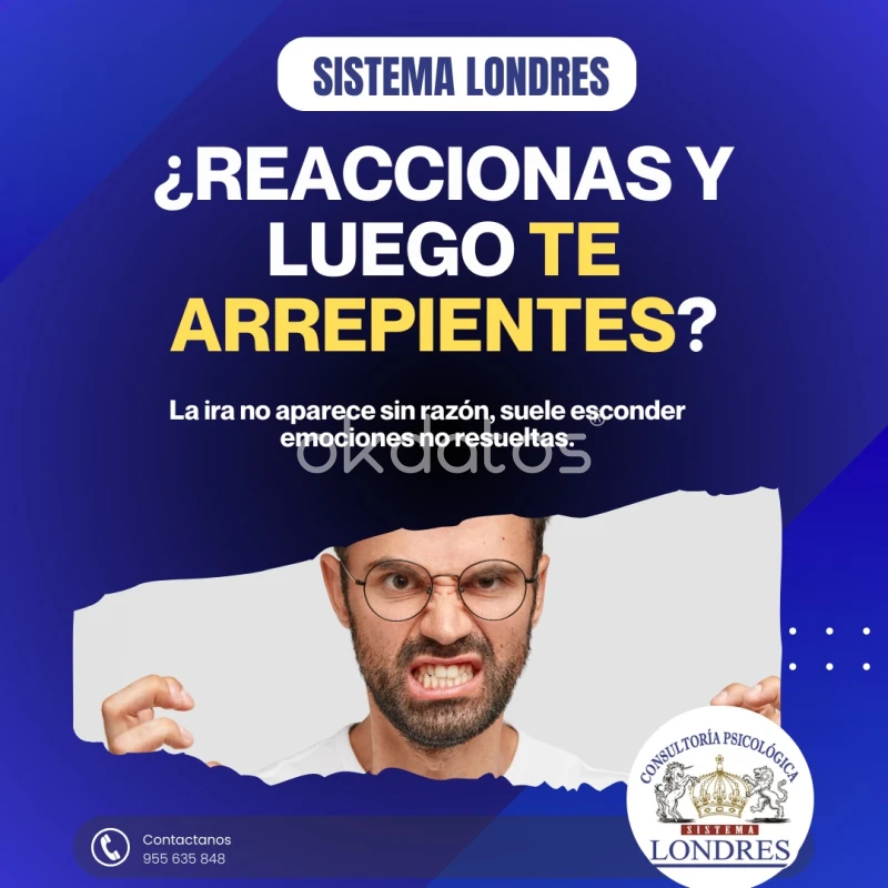 ¿REACCIONAS Y LUEGO TE ARREPIENTES? La ira no aparece sin razón… muchas veces es el reflejo de emociones no resueltas, heridas del pasado o situaciones que se han acumulado en silencio. En Sistema Londres – Consultoría Psicológica te ayudamos a: ✔️ Comprender el origen de tu enojo ✔️ Aprender a regular tus emociones ✔️ Mejorar tus relaciones personales ✔️ Tomar decisiones sin culpa ni arrepentimiento Reaccionar diferente sí es posible. Con acompañamiento profesional puedes transformar la ira en crecimiento. 📞 Agenda tu cita: 955 635 848 📍 Atención personalizada Sistema Londres – Porque tu bienestar emocional sí importa.