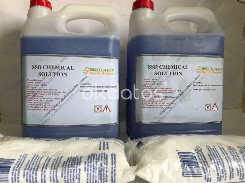 Solución química SSD y polvo activador para la limpieza de billetes Se trata de un antibrisa químico diseñado para eliminar el exceso de sustancia recubierta de billetes. La solución niversal SSD funciona mejor cuando se combina con polvo de activación. La solución SSD de grado superior en comparación con otros componentes SSD la hace más eficiente y ofrece un resultado rápido. La solución SSD universal también se puede utilizar sin polvo. WhatsApp: +33758287219 megachemistlab@gmail.com