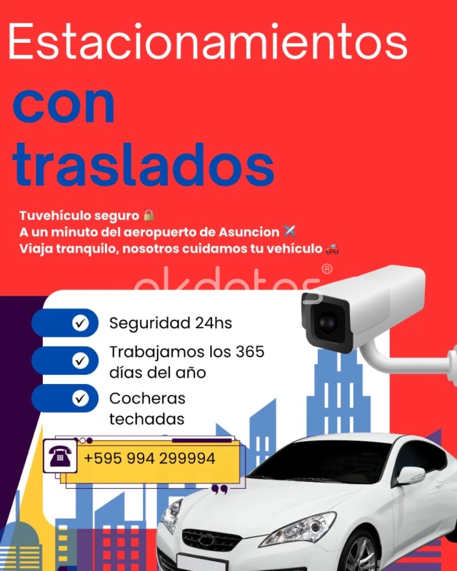 Estacionamiento y traslado al aeropuerto.Cocheras techadas y vigilancia 24 hs