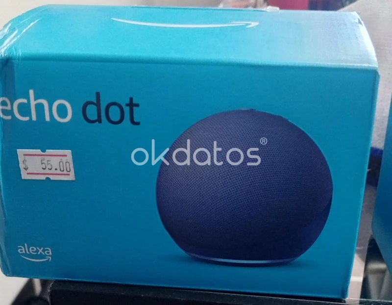 Bocina inteligente Alexa echo Dot 5nta Generación. Colores disponibles azul oscuro y gris. Dale órdenes como Alexa que hora es? Alexa pon la canción tal! Alexa apaga la luz de la cocina. Precio: $55 y 50