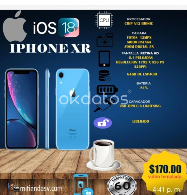 Iphone RX chip A12 ionic fotos12 mpx modo ráfaga zoom digital 5x 64 GB de espacio 81% de batería ya liberado