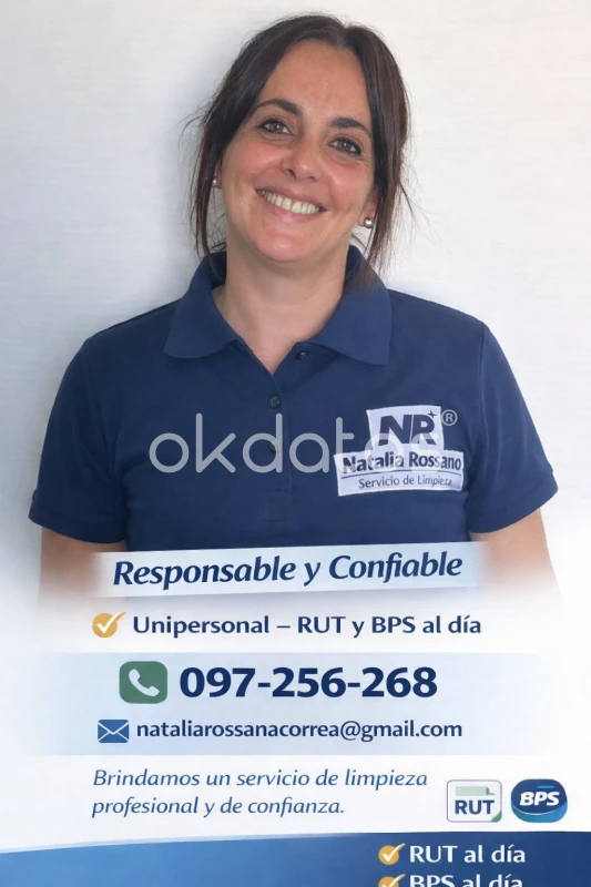 NR Natalia Rossano _ Servicio de limpieza ¿Necesitas una limpieza profunda y responsable? _ LIMPIEZA DE EDIFICIOS _OFICINAS _LOCALES COMERCIALES _ÁREAS VERDES _UNIPERSONAL _MONOTRIBUTO SOCIAL _RUT ACTIVO _BPS AL DÍA _TODO LEGAL Y EN REGLA TRABAJO CON RESPONSABILIDAD PUNTUALIDAD Y CONFIANZA TELEFONO 097 256 268