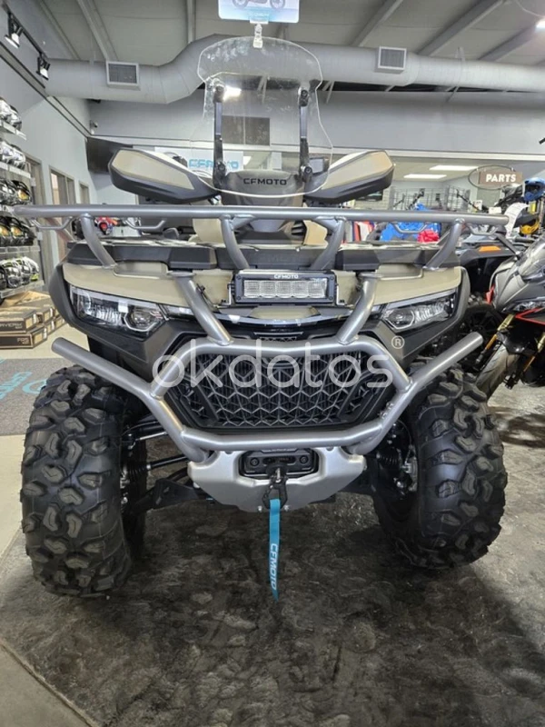La nueva CFMOTO CFORCE 1000 Touring PRO Overland T3b Creada para la aventura. Diseñada para la comodidad. La nueva CFMOTO CFORCE 1000 OVERLAND T3b es tu compañera todoterreno ideal. Equipada con un potente motor bicilíndrico en V, tracción integral robusta y soluciones de almacenamiento excepcionales, esta máquina ofrece una capacidad de turismo inigualable y diversión todoterreno sin igual. Características principales: Motor bicilíndrico para un rendimiento potente Tracción 4x4 seleccionable para una conducción segura fuera de carretera Cofre de equipaje impermeable de 100 L con sistema de liberación rápida CF-Connect Pantalla MMI de 8" para un control claro e intuitivo Suspensión Piggy Back con ajuste de rebote y compresión Llantas Beadlock de 14" para una mayor resistencia y durabilidad Protección inferior de HDPE de 8 mm de alta resistencia Parabrisas y protector frontal (plateado mate) para mayor comodidad y seguridad Respaldo y asiento calefactables, acelerador calefactable: para disfrutar de la conducción en cualquier estación Protección delantera y trasera a juego con el color de la carrocería Cabrestante con cuerda sintética Faros antiniebla y foco de haz ancho Barandilla de transporte para llevar equipo adicional Incluye garantía del fabricante de 4 años (hasta 25 000 km, solo para uso no comercial).
