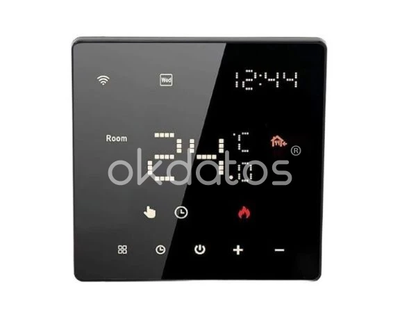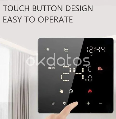 Upgrade your climate control with this sleek and intelligent smart thermostat, designed for precision, convenience, and energy efficiency. Ideal for modern homes and commercial spaces, this device combines advanced features with an elegant touchscreen interface to deliver personalized comfort wherever you are. Key Features: Smart Control: Manage your indoor climate from anywhere using the TuyaSmart or Smart Life app on your smartphone, tablet, or computer. Requires a 2.4GHz Wi-Fi connection. Sleek Interface: Features a modern, anti-scratch LCD touchscreen with backlighting for easy viewing in any lighting condition. Freeze Protection: Automatically activates heating when the room temperature drops below 5 C (41 F) and deactivates it above 7 C (44.6 F), protecting your home from freezing during colder months. Customizable Comfort: Choose between Celsius or Fahrenheit to match your temperature preference. Adaptable Modes