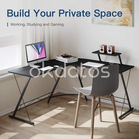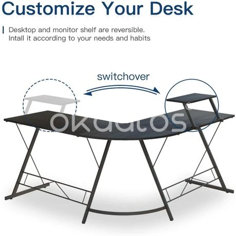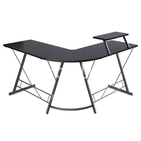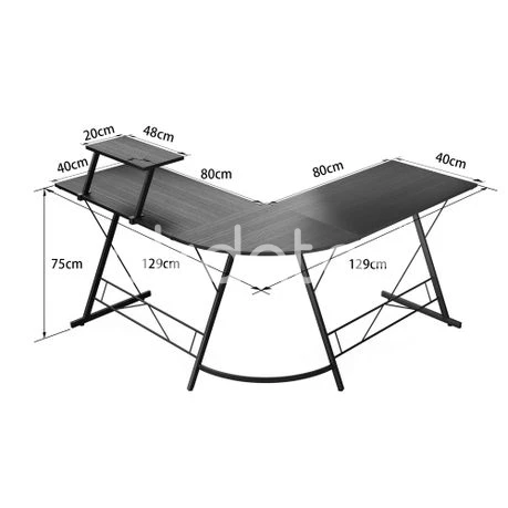 L-shaped desk with optional space-saving monitor stand to make the most of your space, easy to fit snugly into corners to maximise limited space. The desk is made from high quality P2 Mdf panels and a metal frame. The frame is made from heavy-duty powder-coated steel for stability and durability, and this L-shaped computer desk has two sides of equal length, allowing you to easily switch sides to suit your habits. Please note: The product needs to be assembled. Material: MDF panel + iron Colour: Black Weight capacity: 50kg Weight: 18kg Dimensions: 75 x 47 x 80cm Note: This product includes only the computer desk, without any other products. Due to different lighting and screen settings, the color of the item may differ slightly from the picture. Due to manual measurement, please allow slight difference in dimension. What's in the box 1 x Computer desk