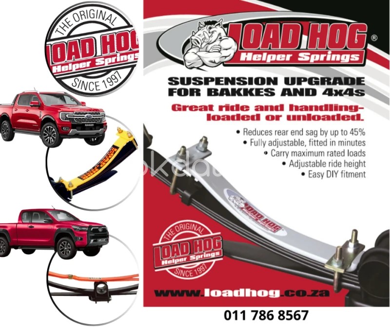 Since 1996 we have been helping thousands of vehicle owners get the most value from their leisure and commercial vehicles. Our range of bolt-on suspension stabilisers improves the ride-quality and weight carrying ability of your bakkie or 4x4. Our systems provide improved stability and control to partially or fully loaded vehicles without affecting the comfort of the un-loaded ride. -Adjustable ride height. -Awesome stability and up to 45% load leveling for pick ups and 4x4s. -Vastly improved handling and ride quality, loaded or unloaded. -Safer, more comfortable ride. -Carry maximum rated loads. -Our products work in conjunction with the existing springs, making them one of the strongest and most effective suspension aids available today. -Easy DIY fitment with basic hand tools. -Available through dealers or delivery country wide. -Our products are fully manufactured in SA. PICKUPS • 4X4S • TOW VEHICLES • LIGHT DELIVERY VEHICLES • COMMERCIAL VEHICLES • FARM VEHICLES• MOTOR HOMES.