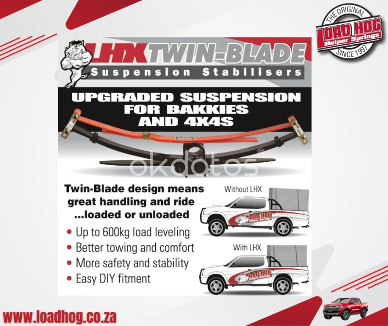 Since 1996 we have been helping thousands of vehicle owners get the most value from their leisure and commercial vehicles. Our range of bolt-on suspension stabilisers improves the ride-quality and weight carrying ability of your bakkie or 4x4. Our systems provide improved stability and control to partially or fully loaded vehicles without affecting the comfort of the un-loaded ride. -Adjustable ride height. -Awesome stability and up to 45% load leveling for pick ups and 4x4s. -Vastly improved handling and ride quality, loaded or unloaded. -Safer, more comfortable ride. -Carry maximum rated loads. -Our products work in conjunction with the existing springs, making them one of the strongest and most effective suspension aids available today. -Easy DIY fitment with basic hand tools. -Available through dealers or delivery country wide. -Our products are fully manufactured in SA. PICKUPS • 4X4S • TOW VEHICLES • LIGHT DELIVERY VEHICLES • COMMERCIAL VEHICLES • FARM VEHICLES• MOTOR HOMES.